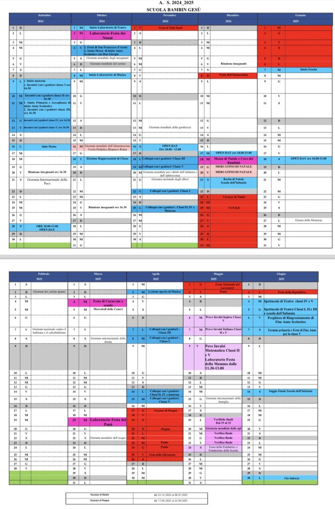 La scuola segue, di norma, il Calendario scolastico stabilito annualmente dalla Regione Lazio.
